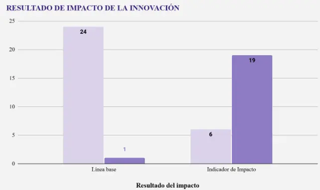 Inicialmente 24 estudiantes de 25 presentaban la problemática de falta de motivación y participación en clases, una vez que se implementó la innovación se logró la participación activa de 19 estudiantes, ya que 6 no asistieron a clases.
