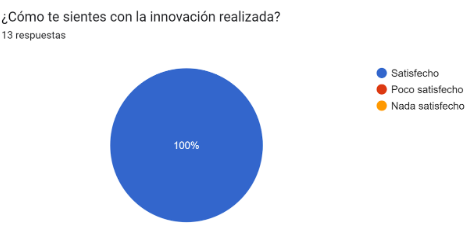 Ambos grupos se sienten totalmente satisfechos con la innovación pedagógica realizada, lo cual es favorable en su proceso de aprendizaje.