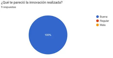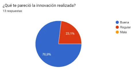 Se puede observar que una gran mayoría de los estudiantes indican que la innovación pedagógica que se desarrolló fue buena, mientras que en el caso del segundo grupo hay un porcentaje que considera que fue regular.
