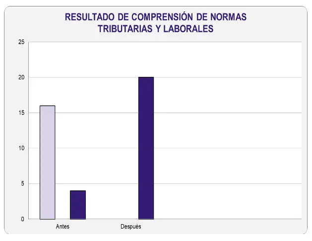 Solo 4 de 20 estudiantes entendían los casos prácticos. Al aplicar la innovación de manera lúdica el 100% de los estudiantes mostraron mejor comprensión y aplicación de las normas tributarias y laborales.