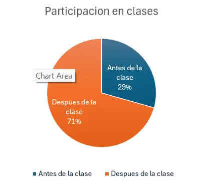 Antes del desarrollo de las clases y de la realización de la actividad solo participaban aproximadamente 30% de los estudiantes, luego de la implementación de las experiencias personales hubo una participación del 71%.