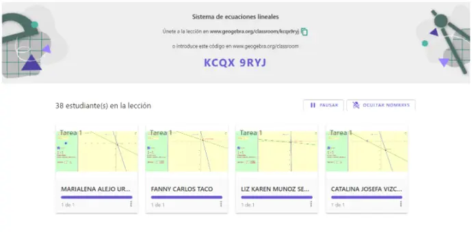 Los ejercicios de Geogebra fueron integrados en la plataforma Google Classroom para que los estudiantes pudieran acceder a ellos de manera sencilla. Se compartió los enlaces de los recursos interactivos en el Aula Virtual del curso en el foro de novedades y consultas al docente.