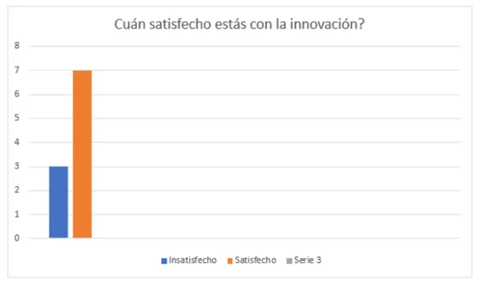 A la pregunta ¡ Cuán satisfecho estás con la innovación realizada?según la encuesta realizada es que la mayoría de estudiantes se encuentra satisfecha.